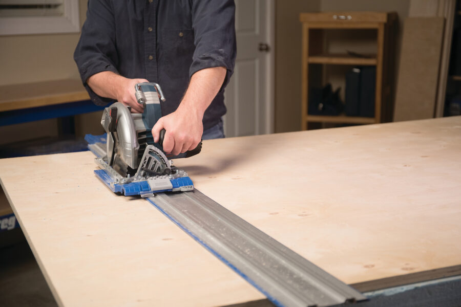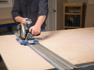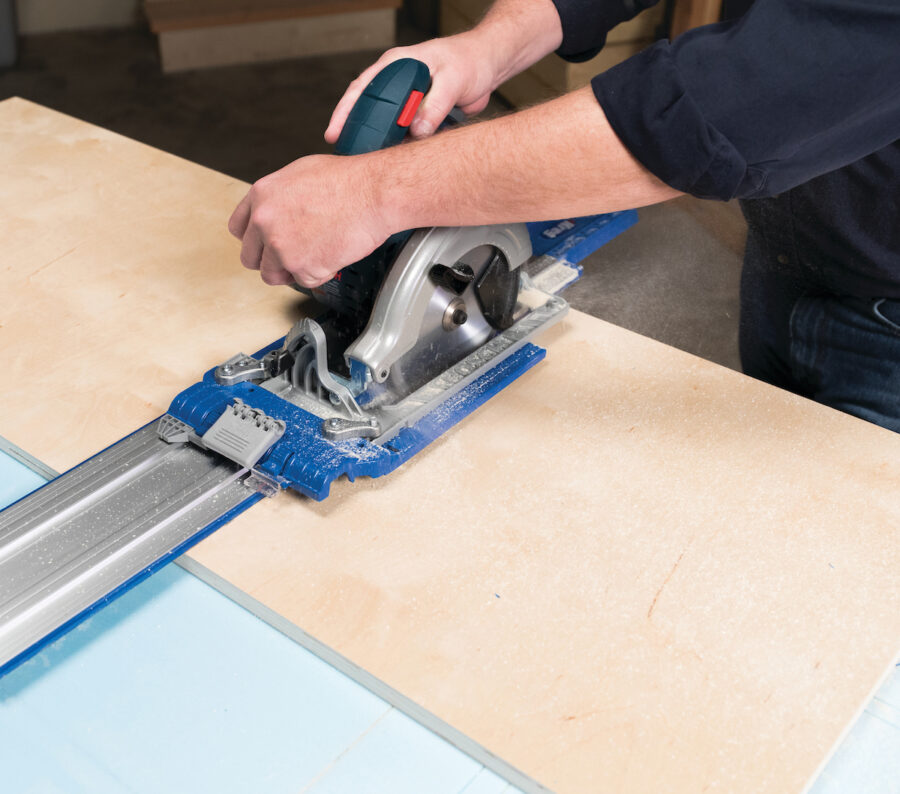 Accu-Cut™ ti consente di eseguire tagli dritti, precisi e senza schegge con la tua sega circolare. Rifila e taglia trasversalmente fino a 1270mm di lunghezza su compensato, MDF e pannelli con un controllo straordinario. Accu-Cut guida la tua sega circolare lungo un binario in alluminio che mantiene la sega in linea retta e semplifica la disposizione semplicemente allineando il binario con la linea di taglio. Le strisce-guida antischeggia e antiscivolo tengono il binario in posizione senza morsetti e trattengono le fibre di legno per evitare tagli scheggiati. Basta montare la sega sulla slitta universale compatibile con la maggior parte delle seghe con lama a sinistra o a destra. Monta la sega sulla slitta scorrevole e sei pronto per tagliare. Poiché Accu-Cut™ è portatile, puoi portare la tua sega direttamente sul pannello da rifilare e tagliare con precisione, piuttosto che dover sistemare pannelli pesanti su una sega da tavolo. Possono essere utilizzati morsetti opzionali con materiali lisci come la melamina o compensato prefinito.