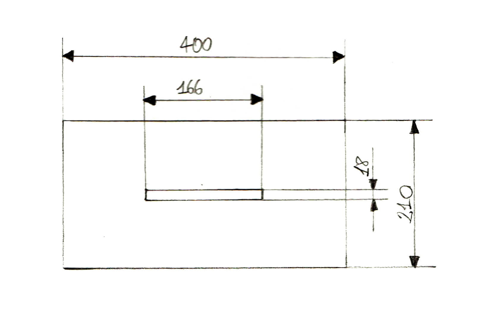 - il primo, corrispondente all’anta – ovvero quello in cui hai eseguito i fori per la maniglia e per le cerniere – 45×84 cm;