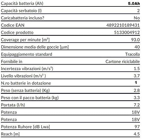 - Le particelle atomizzate possono raggiungere fino a 4,5 m di distanza, molto più lontano di quanto possa raggiungere un irroratore tradizionale