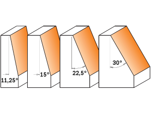 CMT chamfer bits can cut clean, accurate bevels and chamfers and are great for edge work or for making perfectly aligned multi-sided containers, boxes and other decorative projects. See illustration below for examples. Can be used for working larger scale projects such as beams and columns with excellent results.