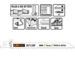 For cutting wood with nails or metal with less than 100mm (4") in thickness, glass fibre reinforced plastic/epoxy with less than 50mm (2") in thickness. Special for curve cuts.