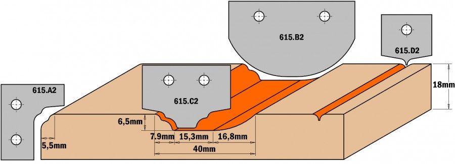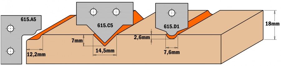 Es posible montar sobre cada cuerpo 5 cuchillas distintas, que le permiten realizar de modo fácil y económico puertas con perfiles diferentes cada vez.