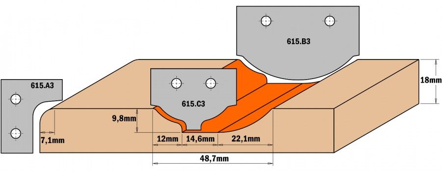 Nuestro nuevo juego de 4 piezas contiene todo lo necesario para efectuar los perfiles más comunes en puertas de MDF para cocina y cuarto de baño.