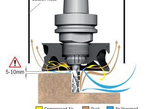 Kinetic Dust Extractor si installa e si rimuove come una semplice ghiera di serraggio.