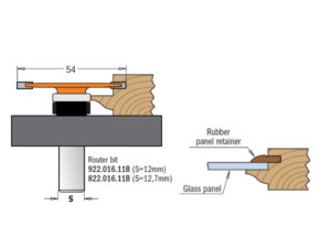 Un coffret unique composé des fraises pour profil, contre-profil doucine et conçu pour la réalisation des panneaux pour portes en verre. Ces fraises réalisent en effet une entaille de 3,2mm (1/8") sur la partie intérieure de votre porte où il sera possible d'installer le vitre qui, ensuite, viendra fixé par des joints en caoutchouc. Travaillez en tenant les outils envers le bas et, successivement, utilisez la fraise à disque de 3,2mm (1/8") pour réaliser la rainure qui abritera le joint en gomme. Il est possible que d’exécuter cette rainure sur la traverse, pour toute la longueur du bois, mais il sera opportune établir des points où commencer et d’autres où terminer la rainure le long du montant; de cette façon elle restera cachée sur les bords supérieurs et inférieurs de la porte.