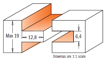 Ces jeux de fraises permettent d’obtenir rapidement un assemblage rainure languette, évitant ainsi tout réglage compliqué. Il est possible de travailler toutes épaisseurs de bois jusqu’à 19mm (3/4"). Une première fraise réalise la languette et l’autre la rainure nécessaire à l’assemblage.
