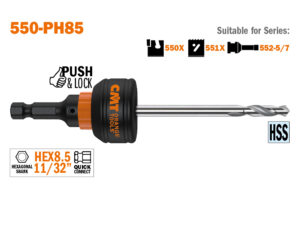 Tutti i componenti necessari per iniziare subito a utilizzare il nuovo sistema XTREME FAST di CMT Orange Tools®. Compatibili con le Serie di seghe a tazza 550X, 551X, 552-5 e 552-7.