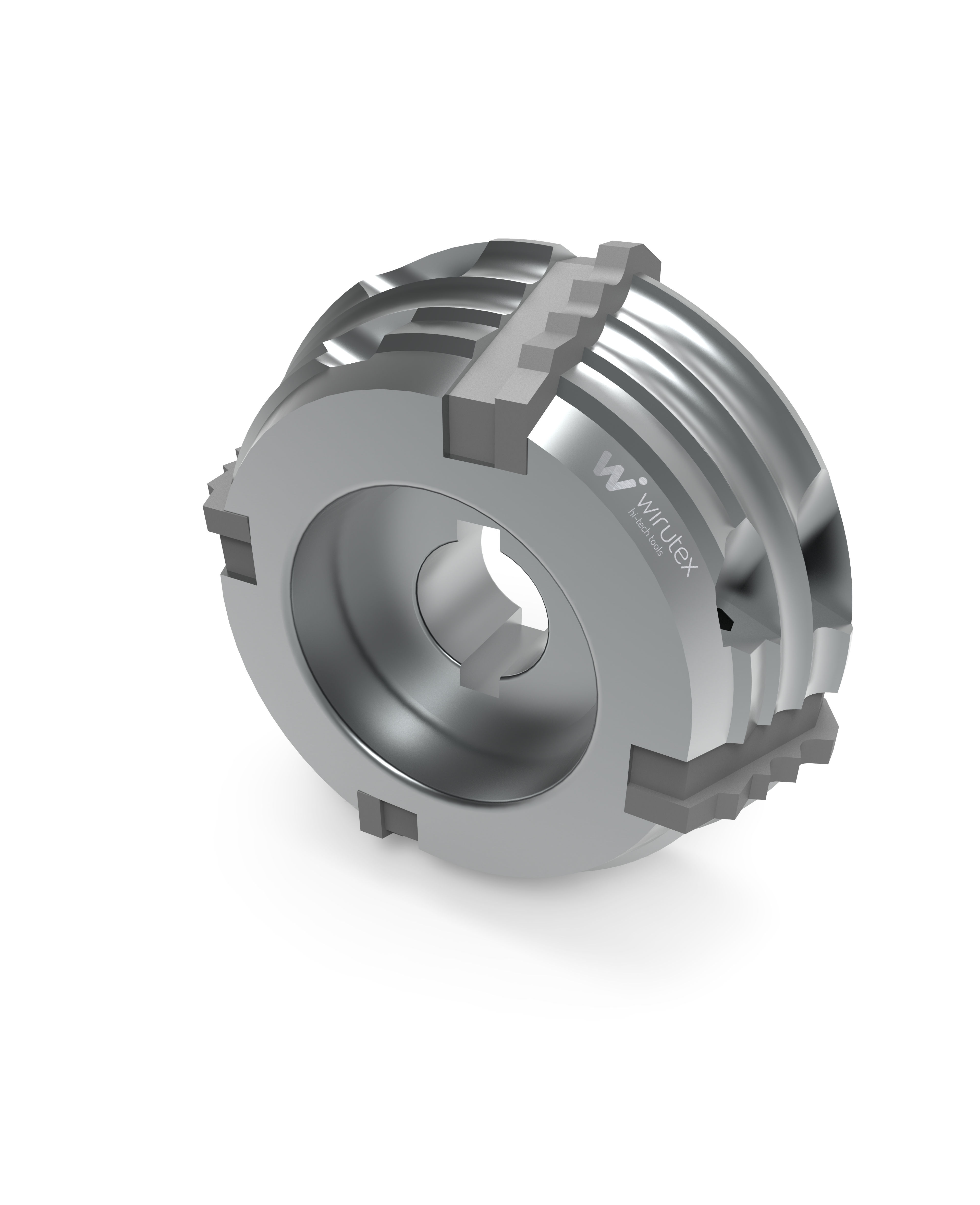 Fresa a fissaggio meccanico con coltelli intercambiabili in HW, per refilatura bordi su motori inclinabili.
