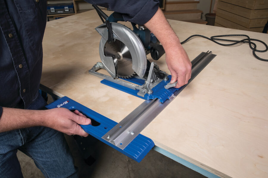 Monta la sega sulla slitta scorrevole universale (compatibile con la maggior parte delle seghe con lama sinistra o destra) e quindi far scorrere la slitta sulla guida in alluminio. La guida del bordo è reversibile per essere usata da mancini e destrorsi. La squadra Rip-Cut™ è uno strumento facile, preciso e conveniente per tagliare compensato e pannelli a misura.