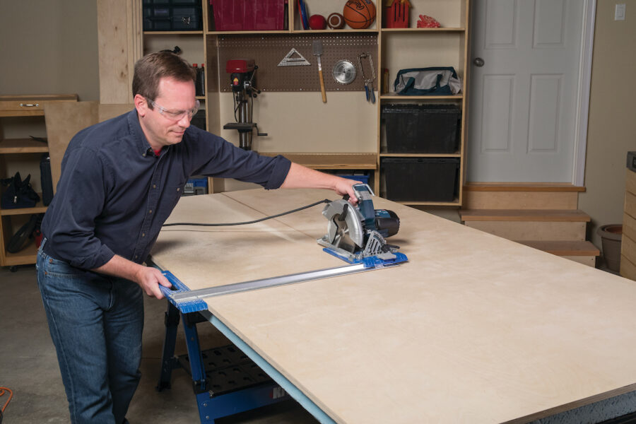 I tagli dritti sono facili grazie a una guida sul bordo di ampie dimensioni con una maniglia che offre maggiore controllo durante l’intero taglio seguendo il bordo del pannello.
