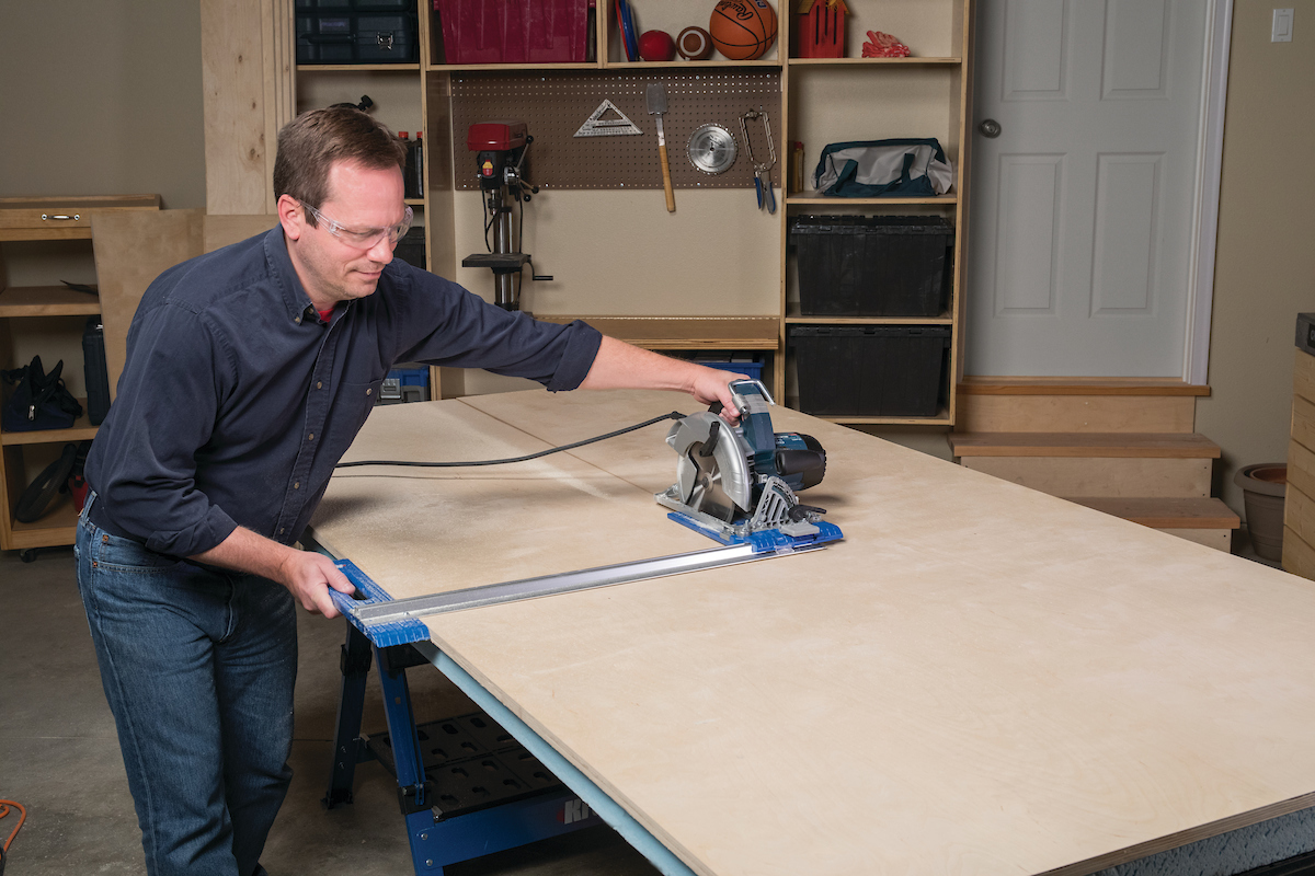 La squadra Rip-Cut™ trasforma la tua sega circolare in uno strumento di taglio assistito di precisione che esegue tagli dritti, precisi e ripetibili su compensato e altri pannelli di grandi dimensioni. Con la squadra Rip-Cut, non devi misurare, segnare o lottare per mantenere la sega sulla linea di taglio, grazie a una lunga guida che segue il bordo del pannello. Basta bloccare la sega alla misura desiderata, fino a 610mm, utilizzando la scala di misurazione integrata, quindi eseguire il taglio.