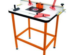 Il tavolo professionale per elettro-fresatrice, alto 90cm, ha un piano di lavoro forte e robusto, delle gambe in acciaio e una superficie laminata che misura 80x60x2,5cm che permette agili spostamenti durante il lavoro. Il peso del tavolo è di 26,5kg.