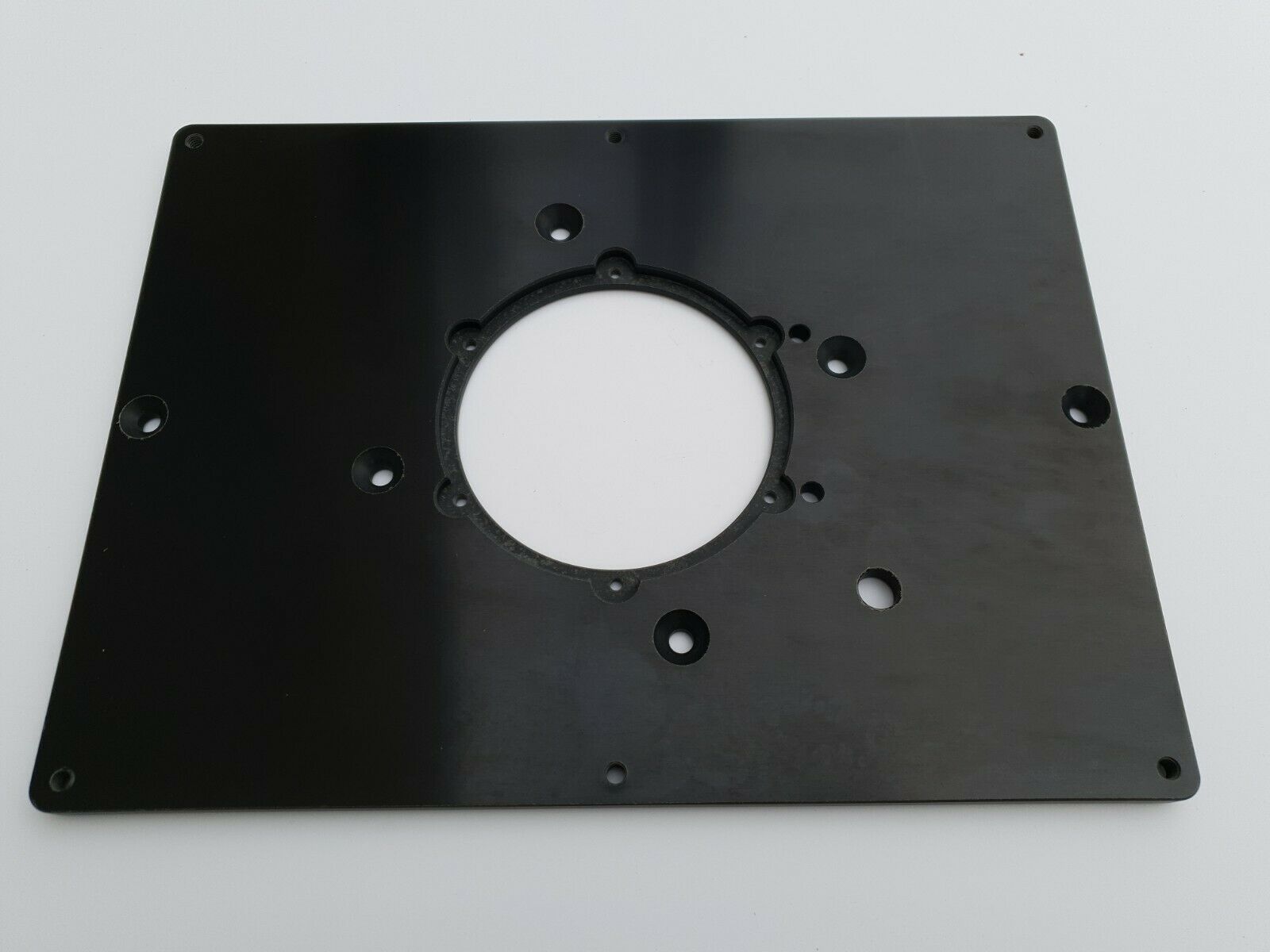La piastra è pre-forata per l’elettro-fresatrice CMT7E, ma è possibile utilizzare anche altri modelli e marche di fresatrici presenti sul mercato. Inoltre è possibile inserire qualsiasi tipo di fresa fino a 98mm di diametro.